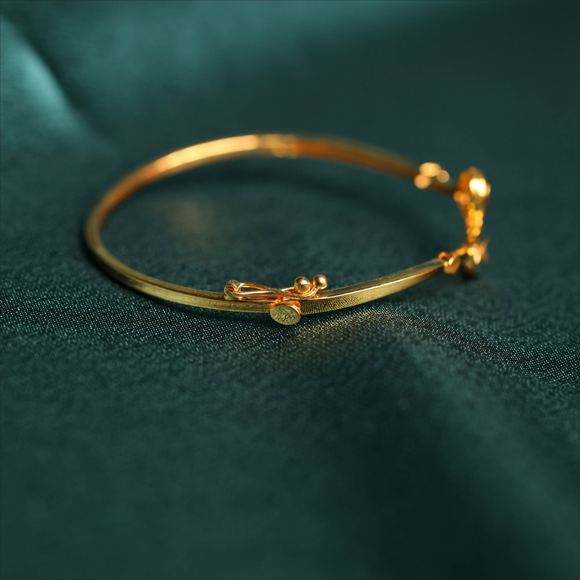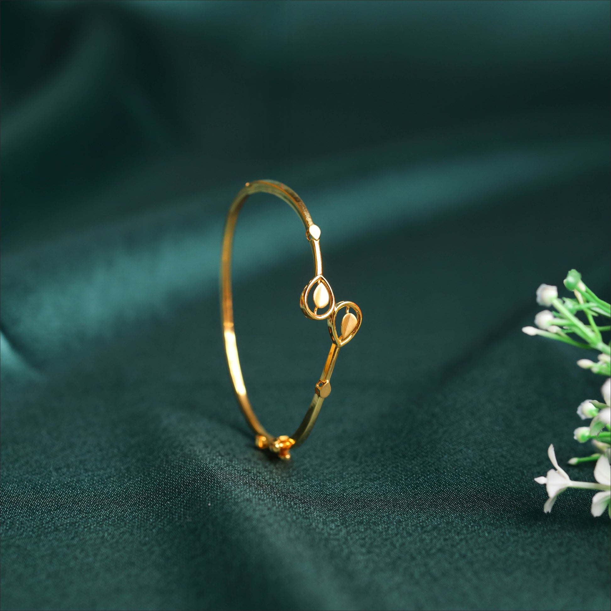 Embrace nature's beauty with this 22KT Gold Women's Kada. This delicate fancy kada is designed with a graceful leaf casting motif, offering an organic and sophisticated charm. A perfect piece of designer gold jewellery for a subtle, elegant statement.