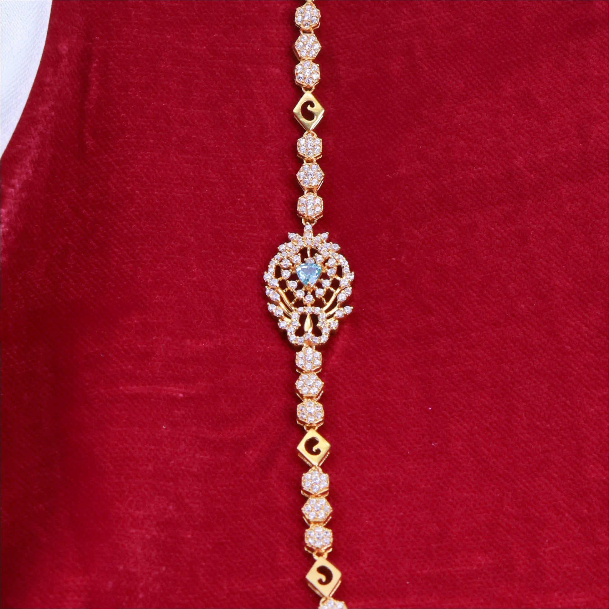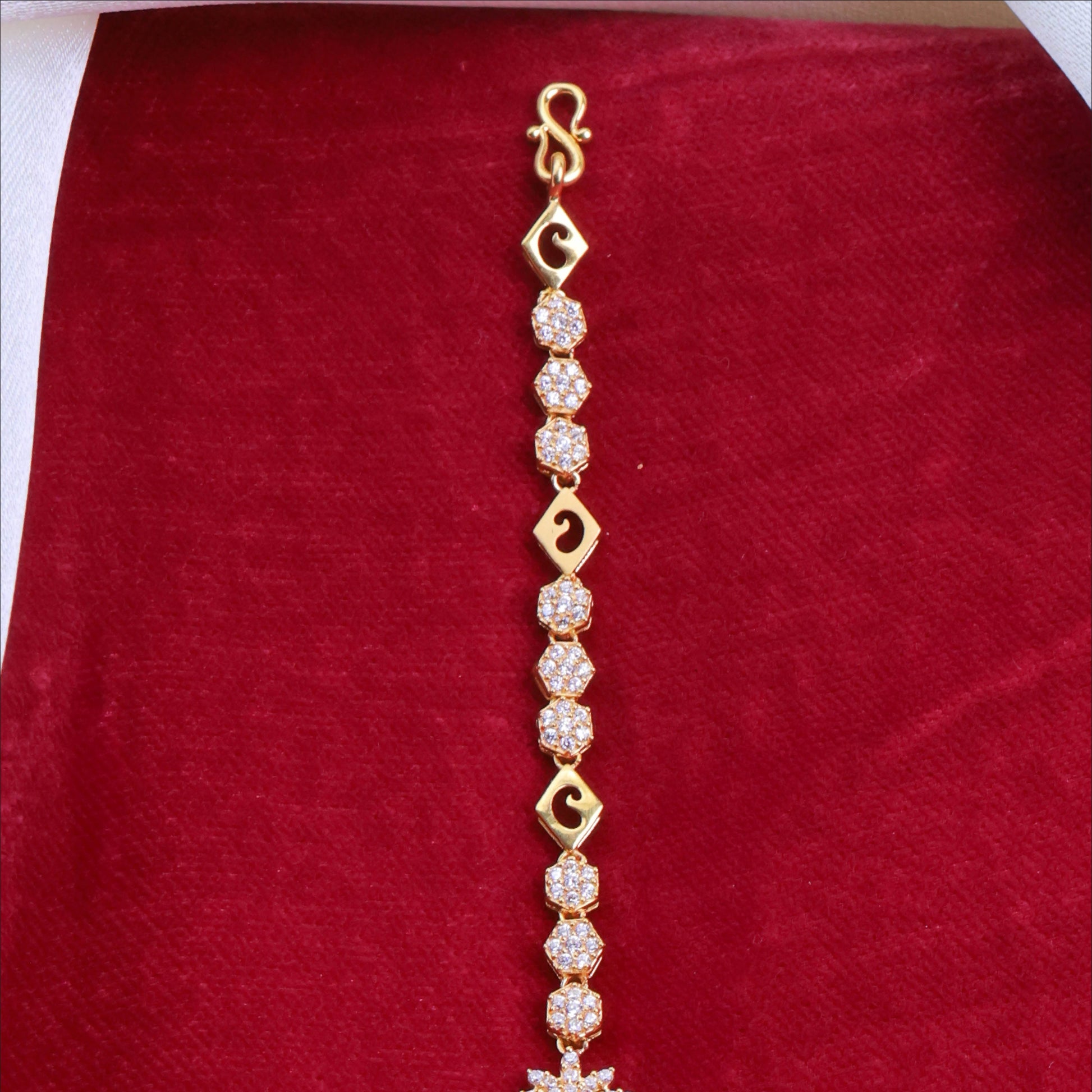 Adorn your wrist with a garden of pure gold. This breathtaking 22KT gold women's bracelet features a detailed and repeating floral casting design, creating a flexible garland of blossoms. To elevate its beauty, sparkling CZ stones are carefully set within the flowers, adding a touch of radiant, luxurious shimmer. This fancy bracelet is a deeply romantic and feminine piece, perfect for the woman who loves nature-inspired elegance.
