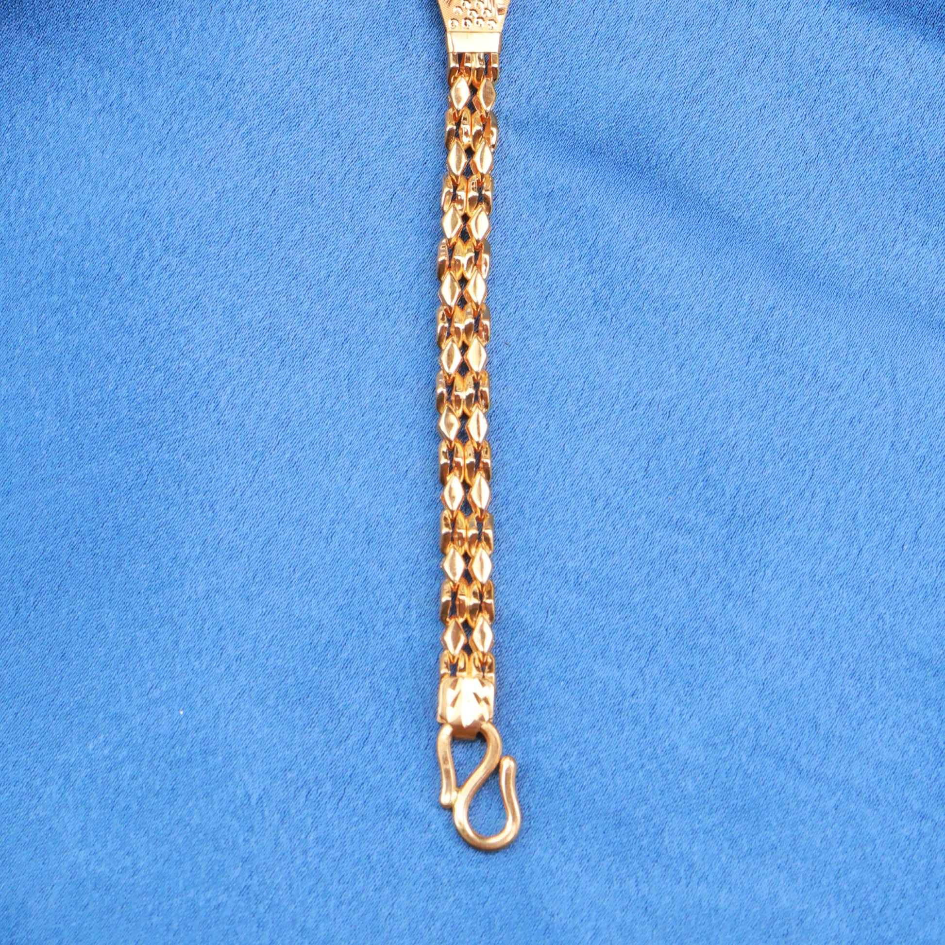 Exude confidence with this premium Traditional Look With Diamond Shape Cutting Bracelet. Crafted in high-quality 22KT Gold, this piece is a standout in our Men's Bracelet Collection. Perfect for weddings and festive occasions.