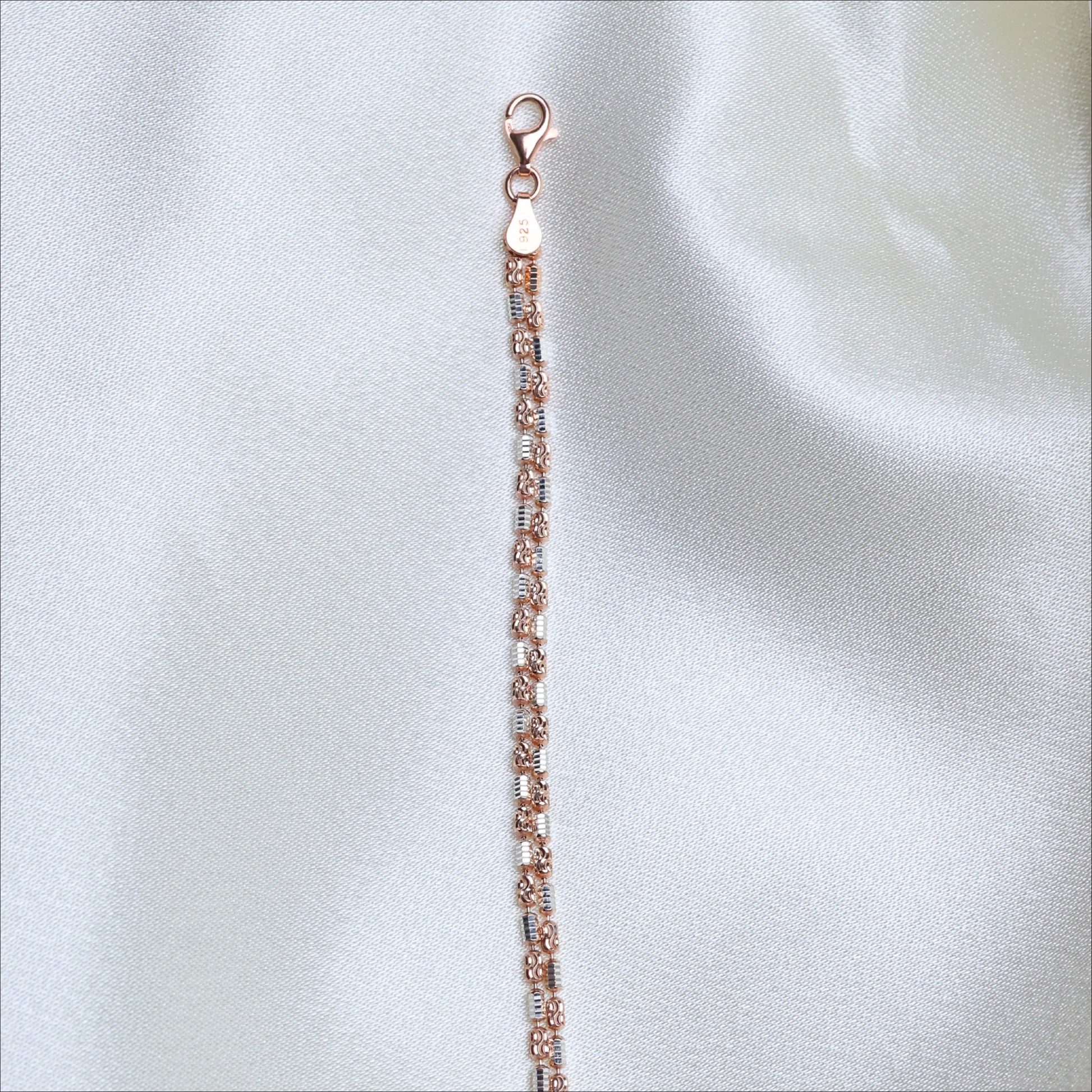 Shop this exquisite 92.5 Silver Rose Gold Fancy Bracelet for Women. Characterized by twolines model beacelet and defining traditional elegance.