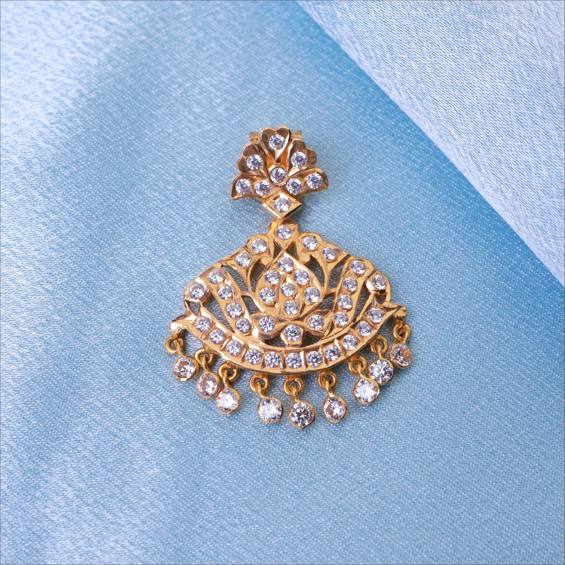 Add a splash of color with this vibrant Full Stone Work Fancy Pendant. Crafted in high-quality 22KT Gold, this piece is a standout in our Stone Pendant Collection. Perfect for weddings and festive occasions.
