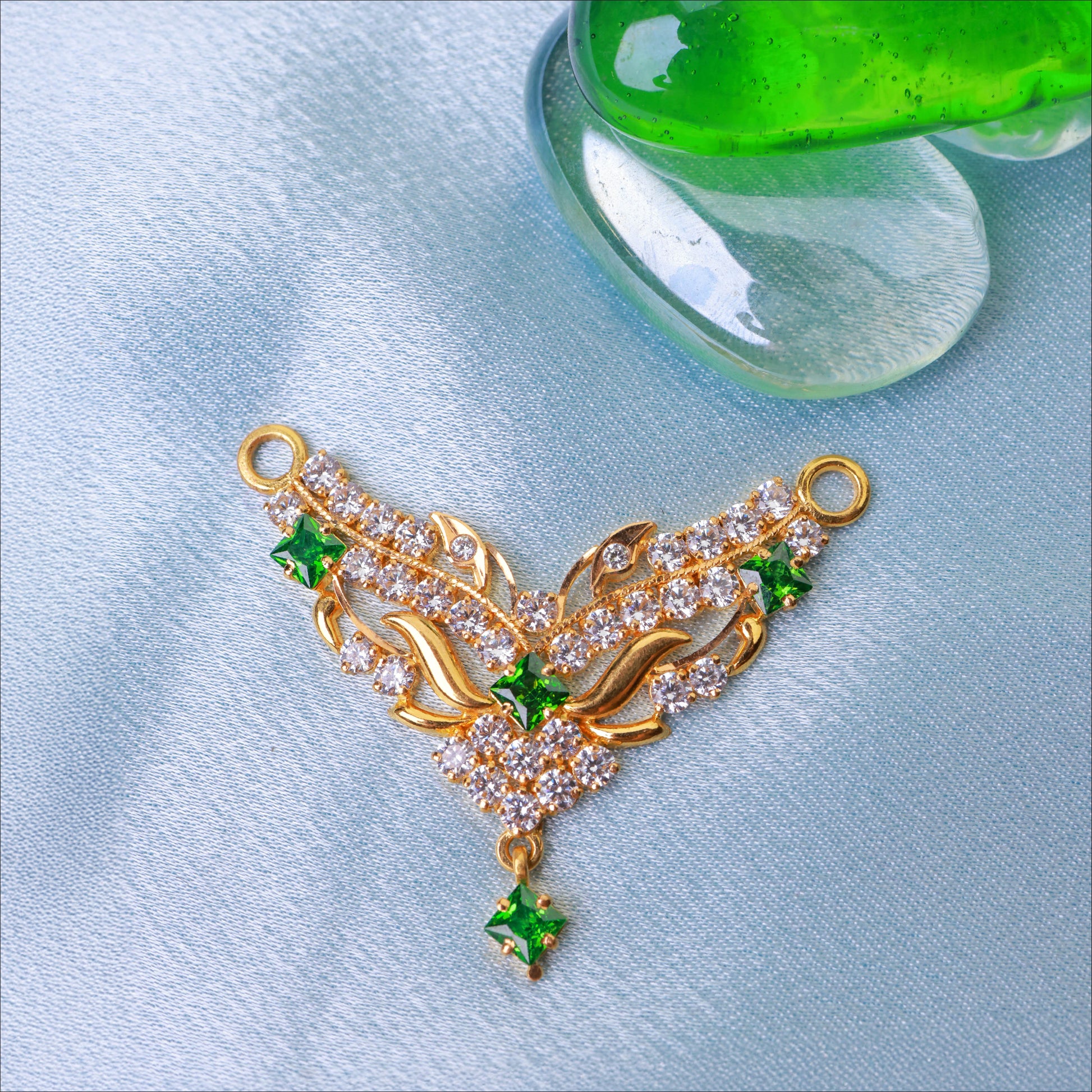Add a splash of color with this colorful Green And White Stone Work Full Casting Fancy Pendant. Crafted in high-quality 22KT Gold, this piece is a standout in our Stone Pendant Collection. Perfect for weddings and festive occasions.