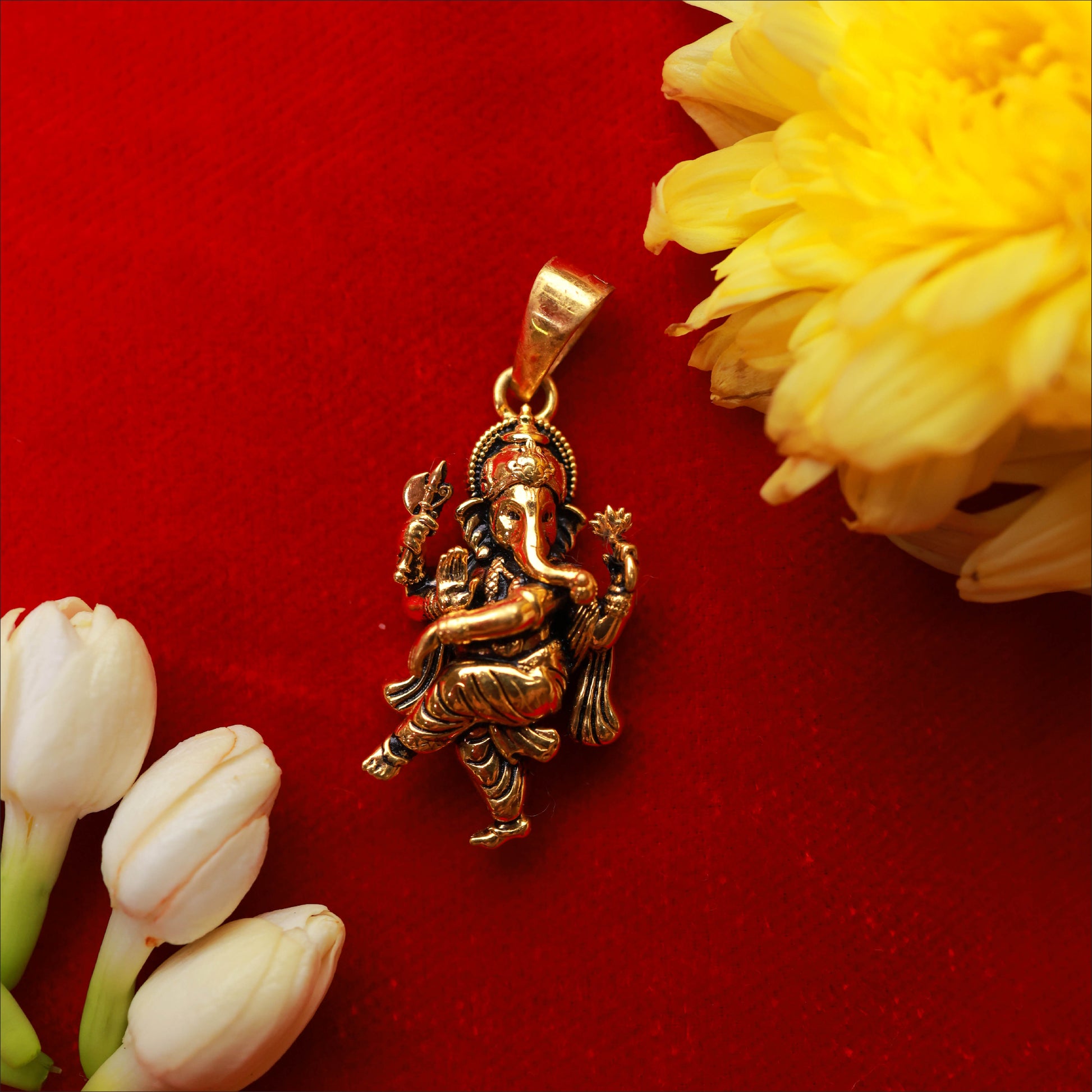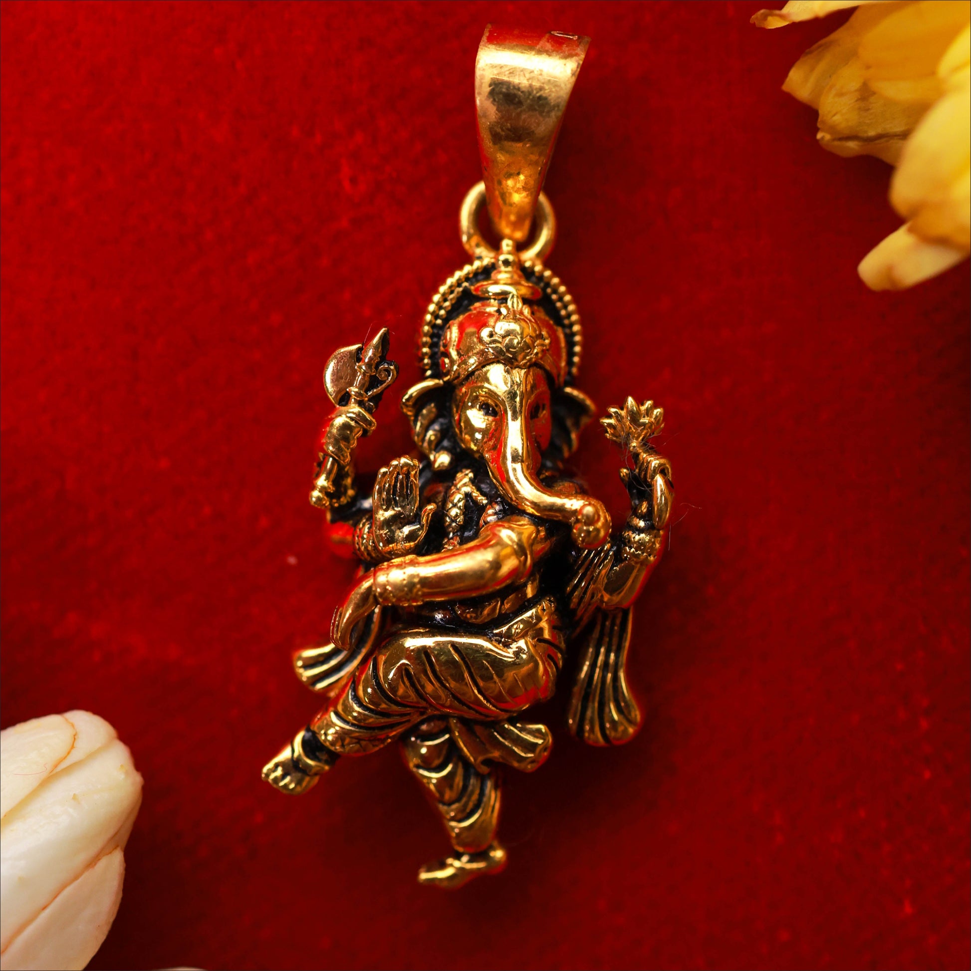 Invoke blessings with this intricate Strong Vinayagar Fancy Pendant. Crafted in high-quality 22KT Gold, this piece is a standout in our Temple Jewellery Collection. Perfect for weddings and festive occasions.
