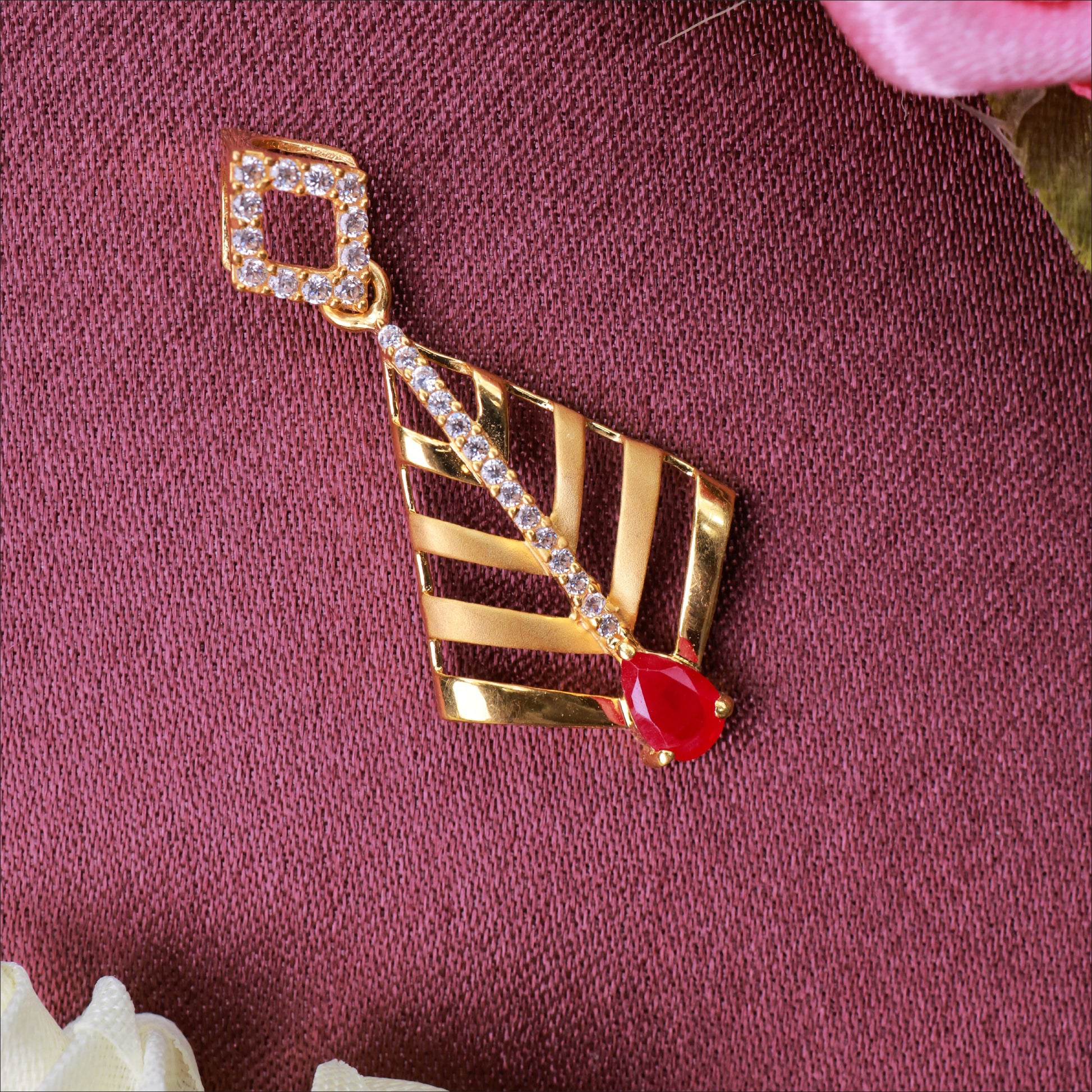 Add a splash of color with this vibrant Ruby Stone Work Double Sided Casting Pendant. Crafted in high-quality 22KT Gold, this piece is a standout in our Stone Pendant Collection. Perfect for weddings and festive occasions.