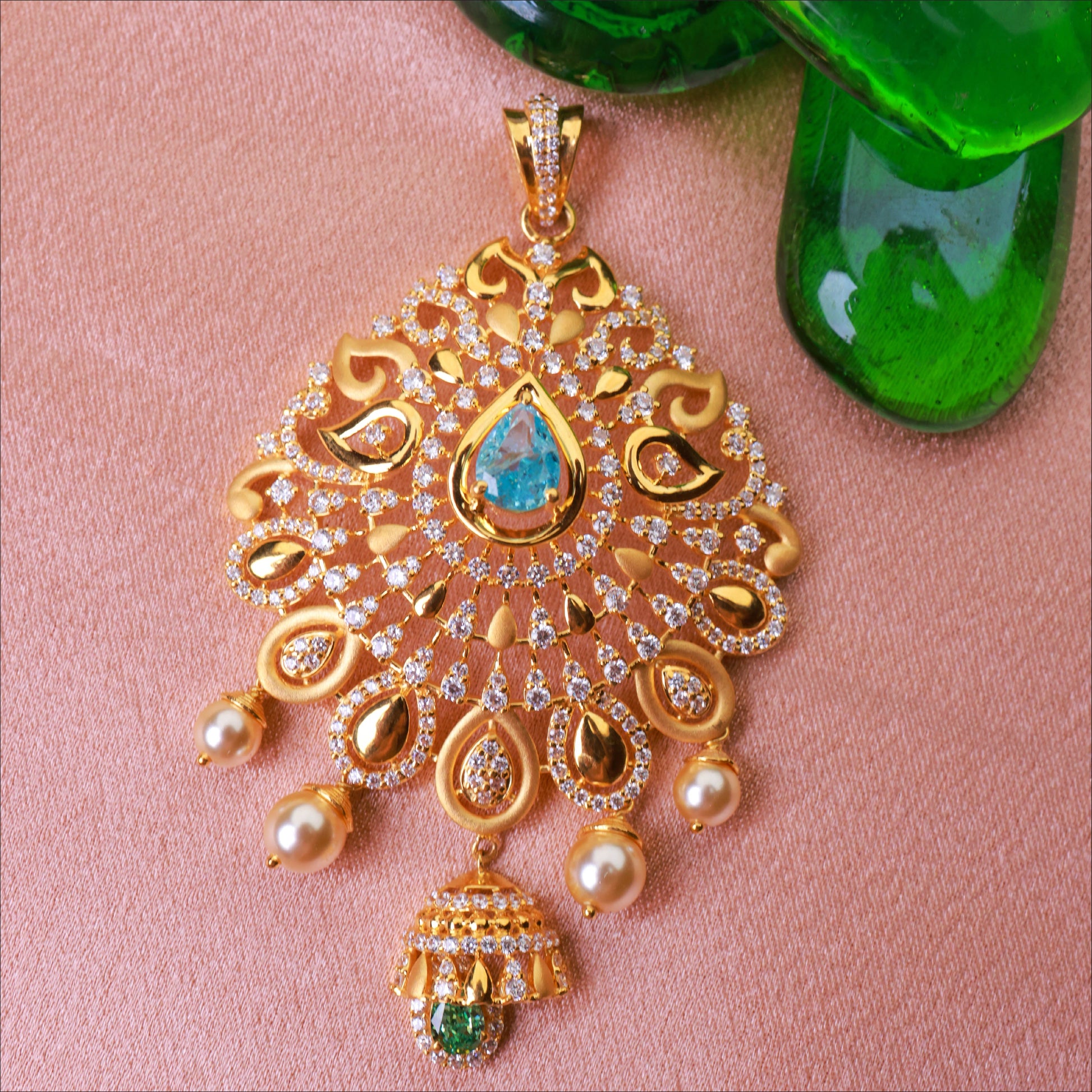 Discover the artistry of this detailed Full Stone Work With Pearl And Casting Fancy Pendant. Crafted in high-quality 22KT Gold, this piece is a standout in our Casting Collection. Perfect for weddings and festive occasions.
