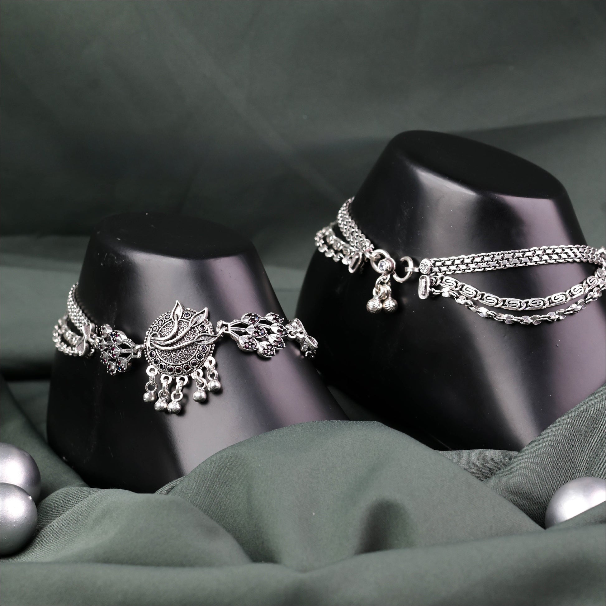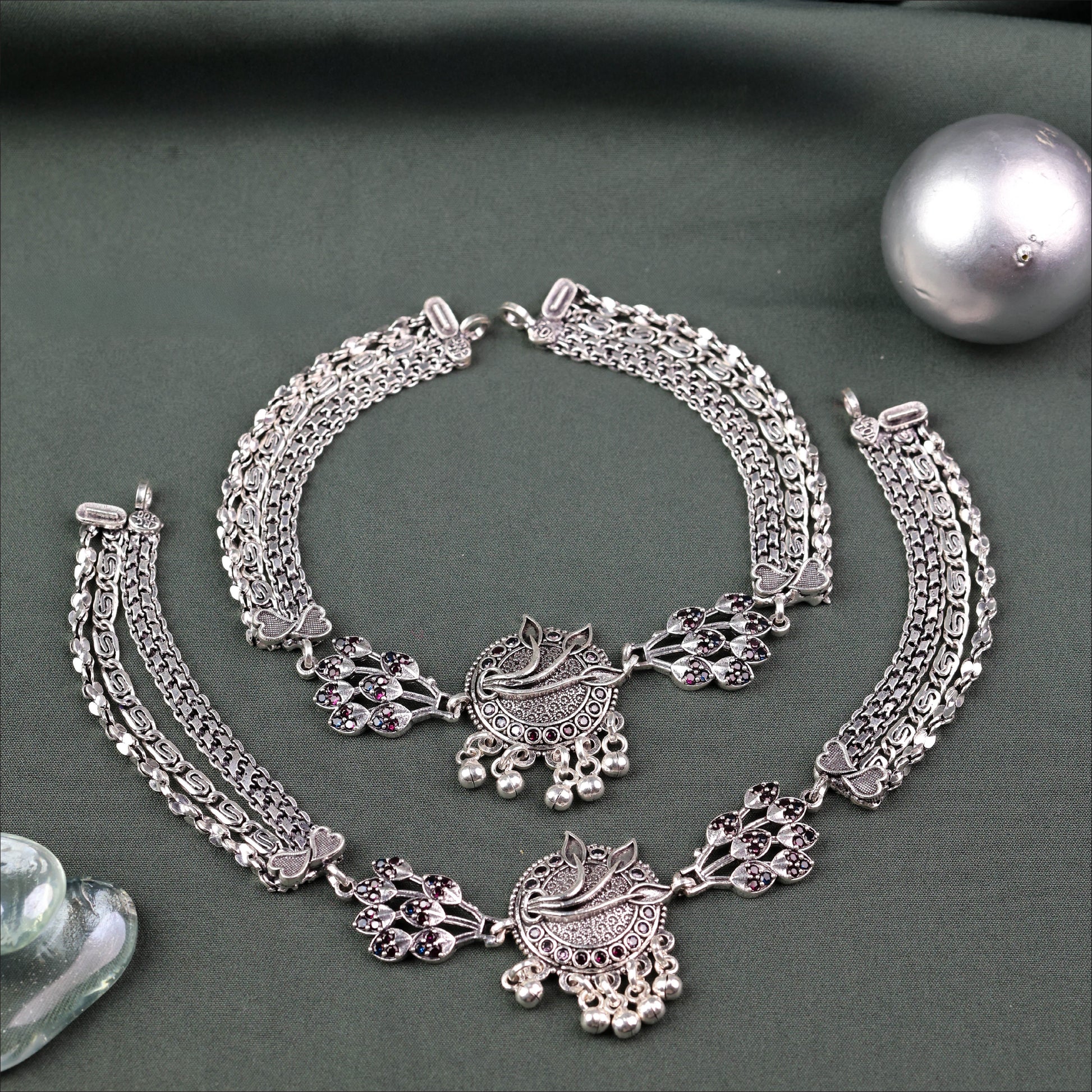 Discover our elegant 92.5 Silver Kolusu, perfect for Women. This piece features a antique dhrushti rope design. Authentic 92.5 Silver Jewelry.