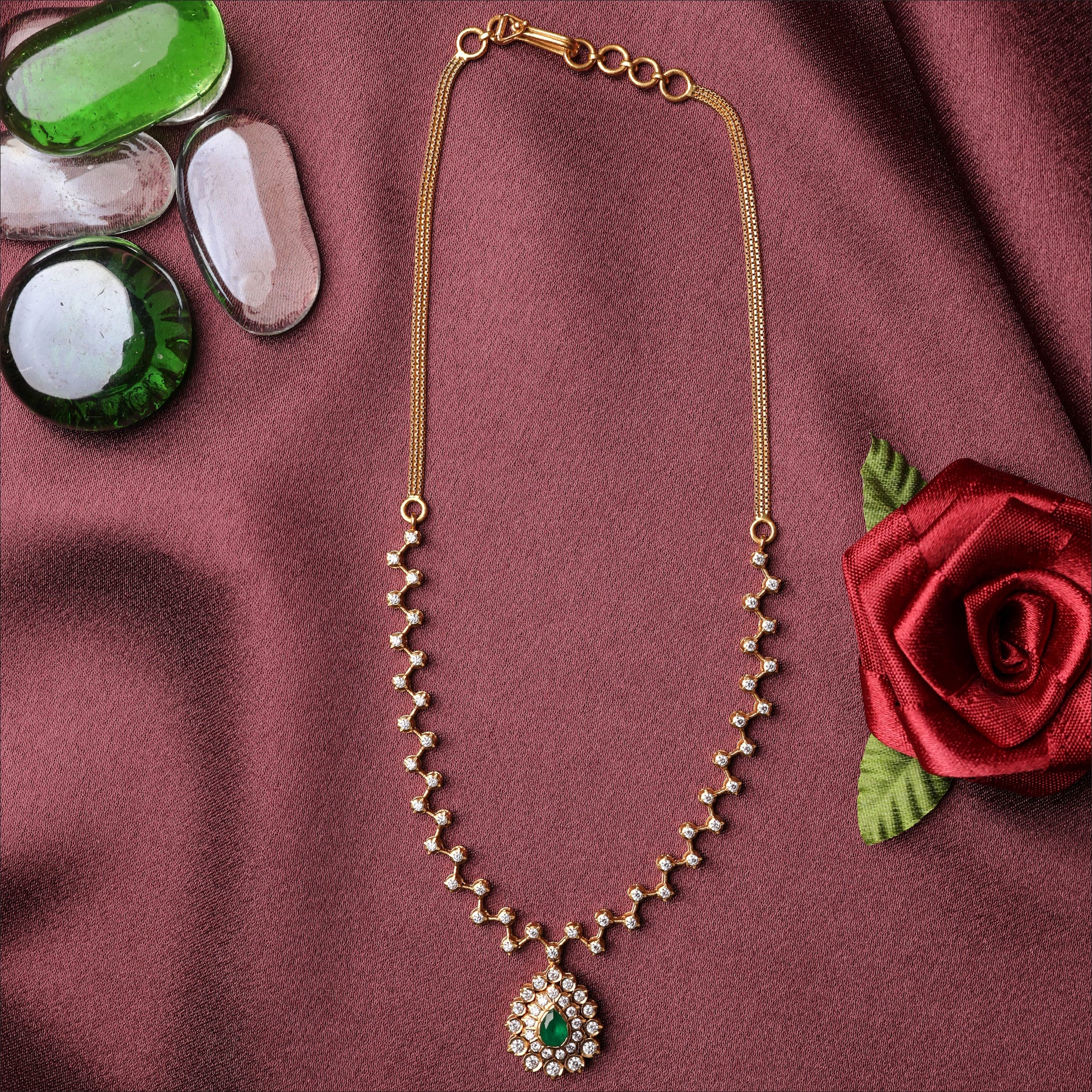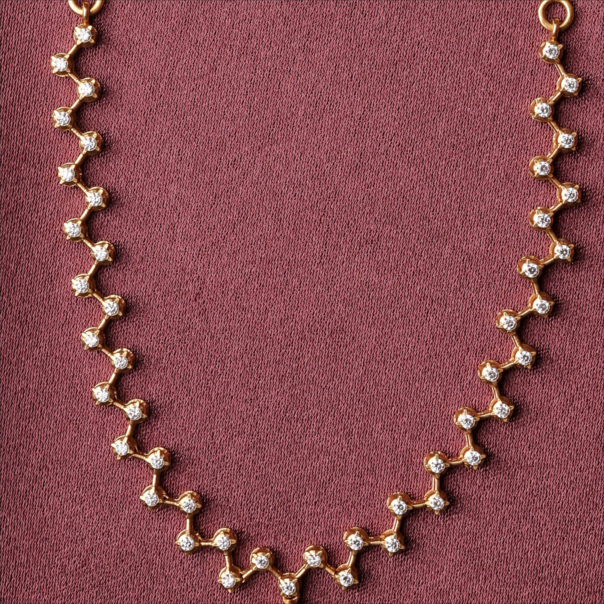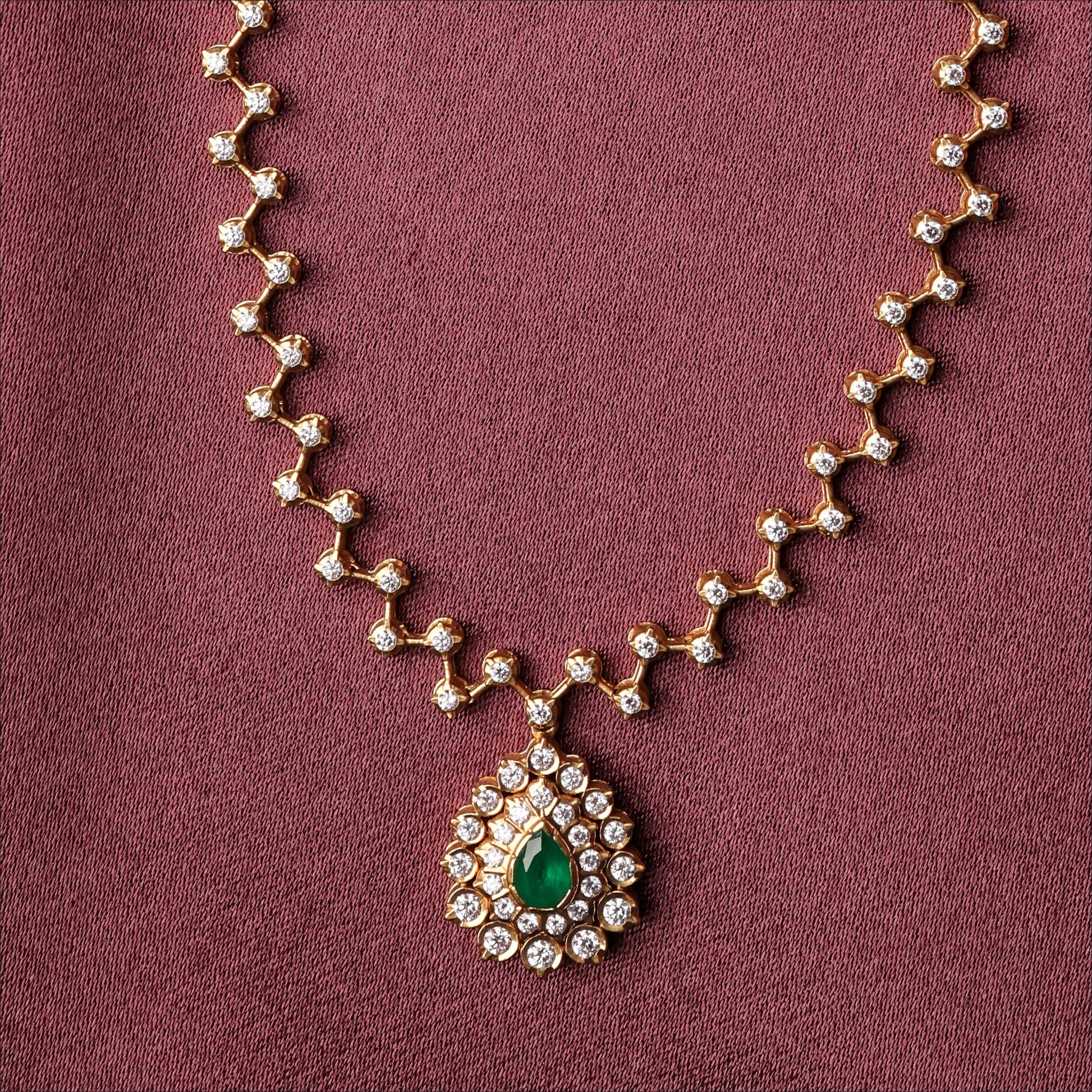Elevate your look with this 22KT Diamond Necklace. Designed for Women, this piece showcases EMERALD ZIG ZAG LINE FANCY NECKLACE. A top pick for 'Best Diamond Necklace for Women' searches.