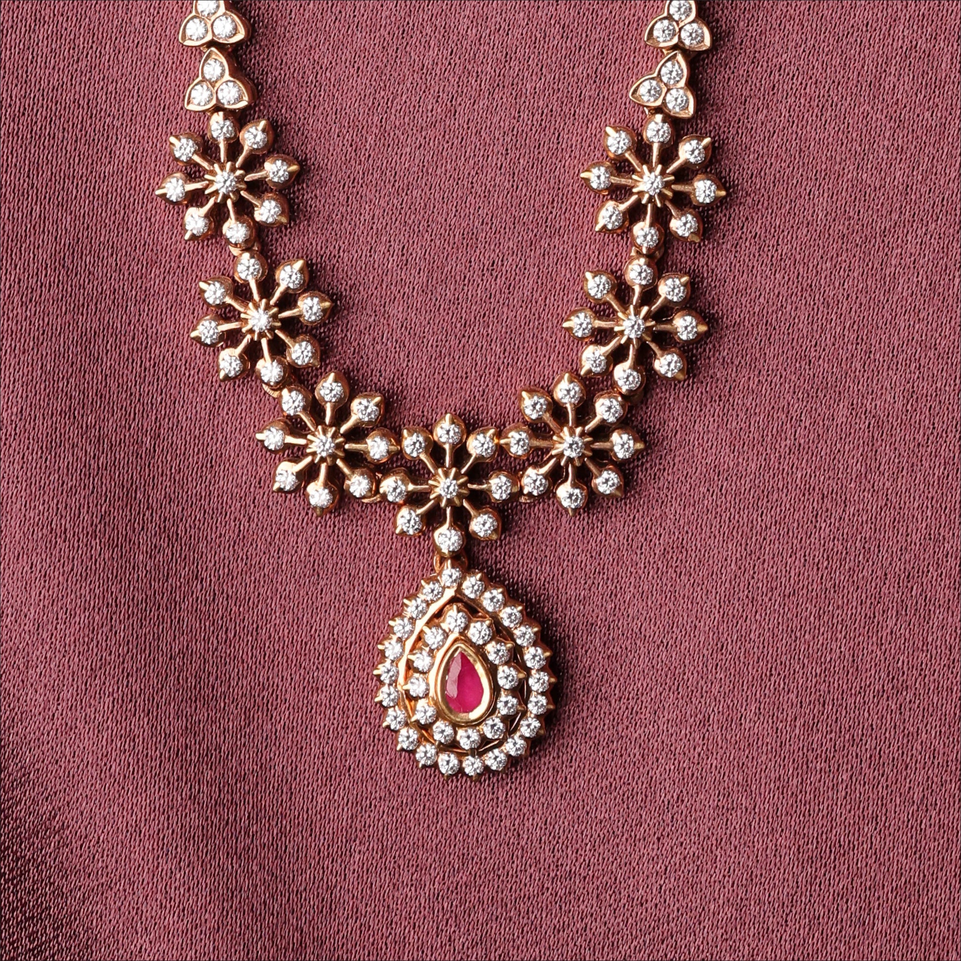 Elevate your look with this 22KT Diamond Necklace. Designed for Women, this piece showcases RUBI PENDANT FANCY NECKLACE. A top pick for 'Best Diamond Necklace for Women' searches.