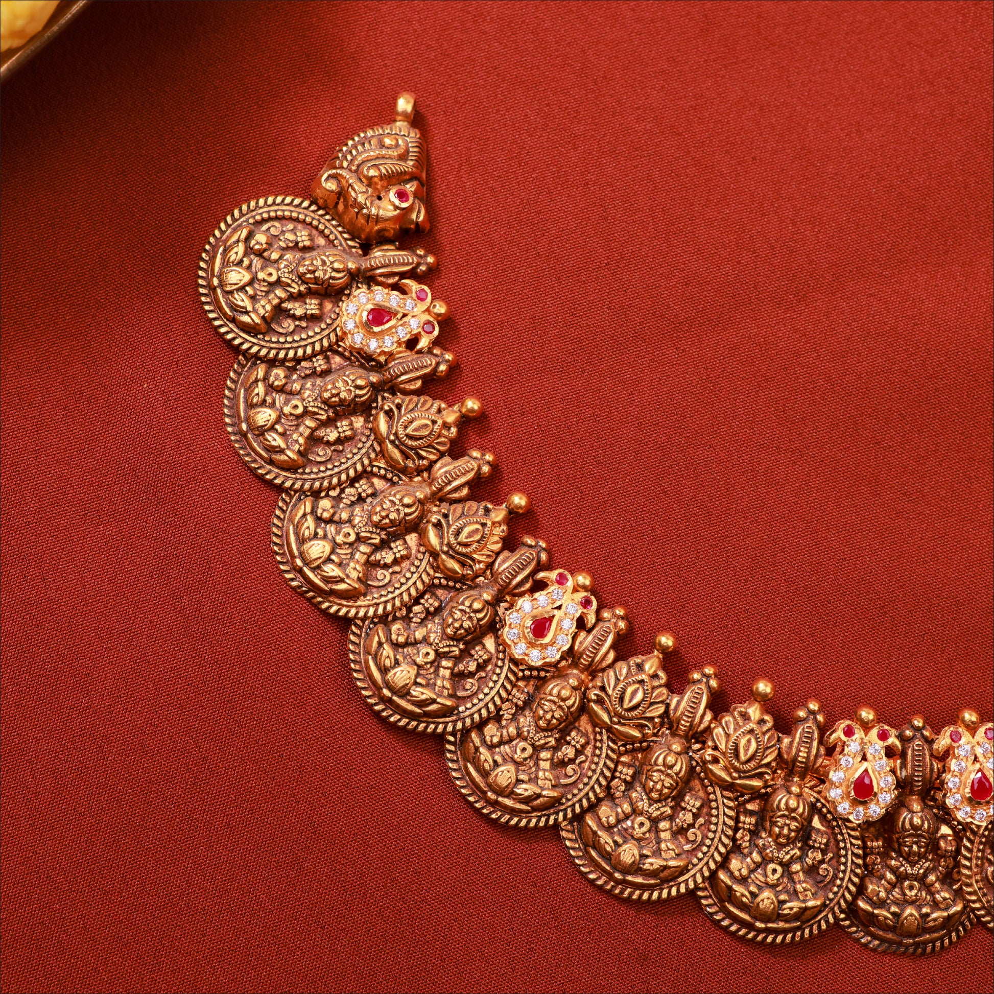 Adorn yourself with this heritage Coin Necklace. Crafted in high-quality 22KT Gold, this piece is a highlight of our Antique collection. Perfect for weddings and festive occasions.