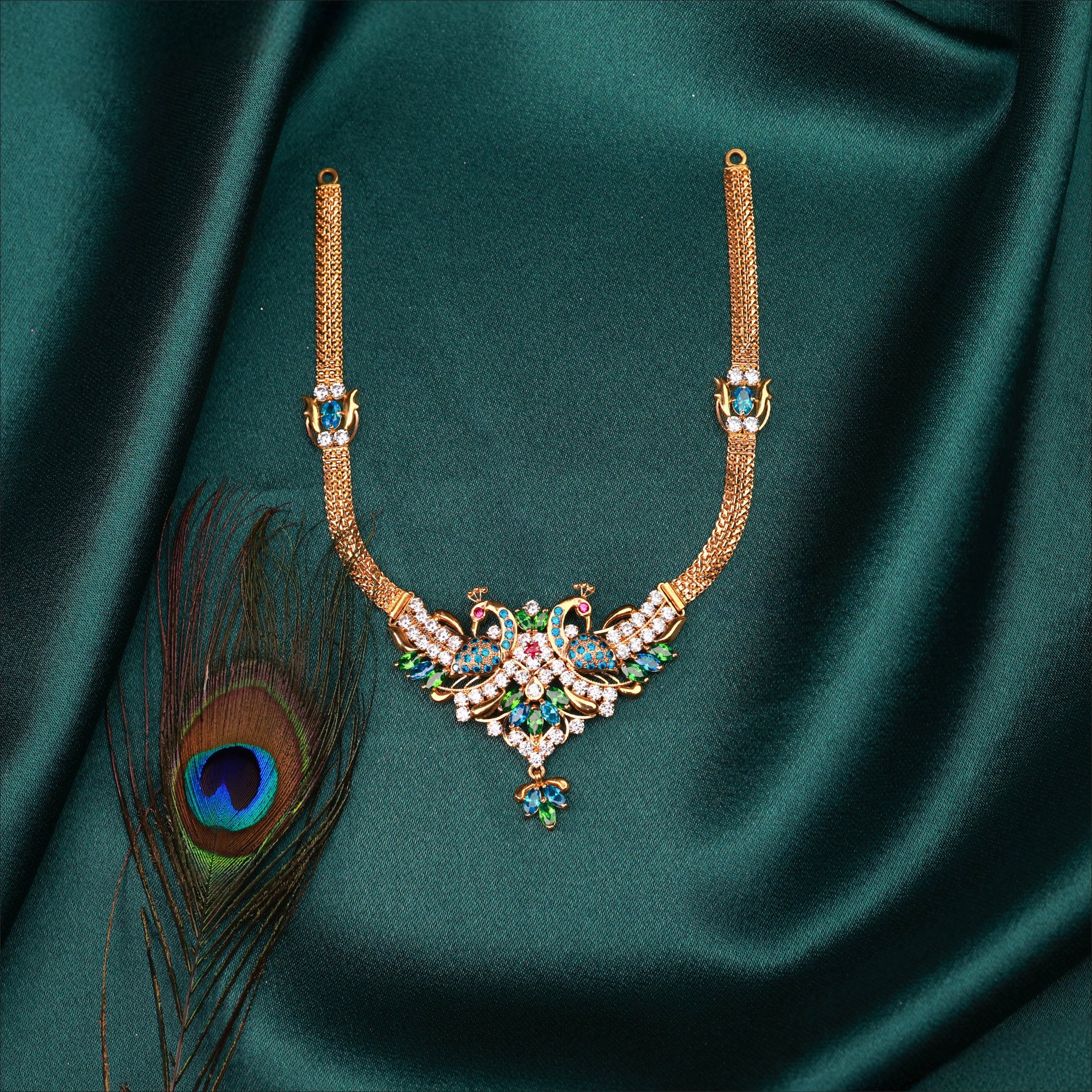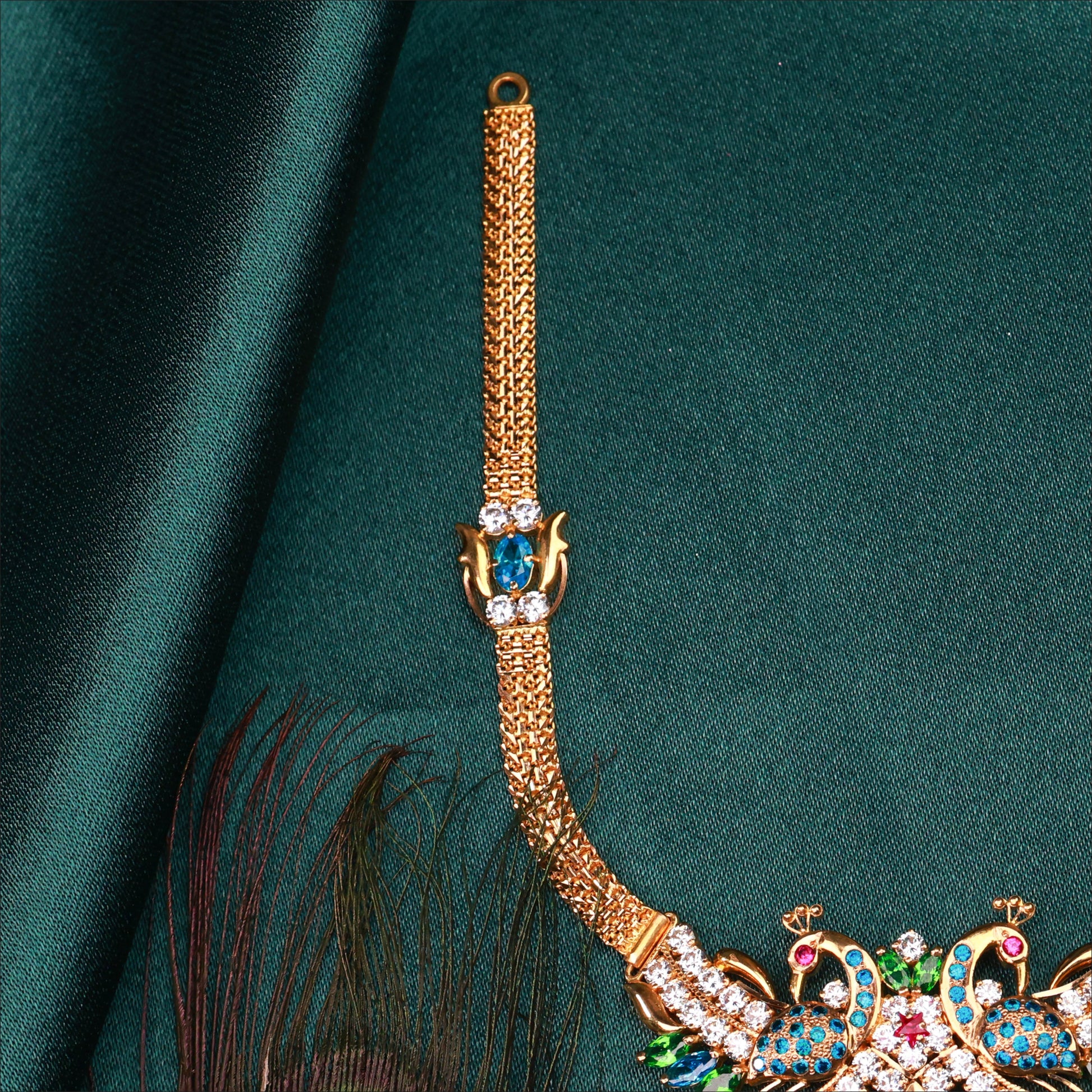 Elevate your look with this glamorous Peacock Stone Necklace. Crafted in high-quality 22KT Gold, this piece is a highlight of our Stone collection. Perfect for weddings and festive occasions.