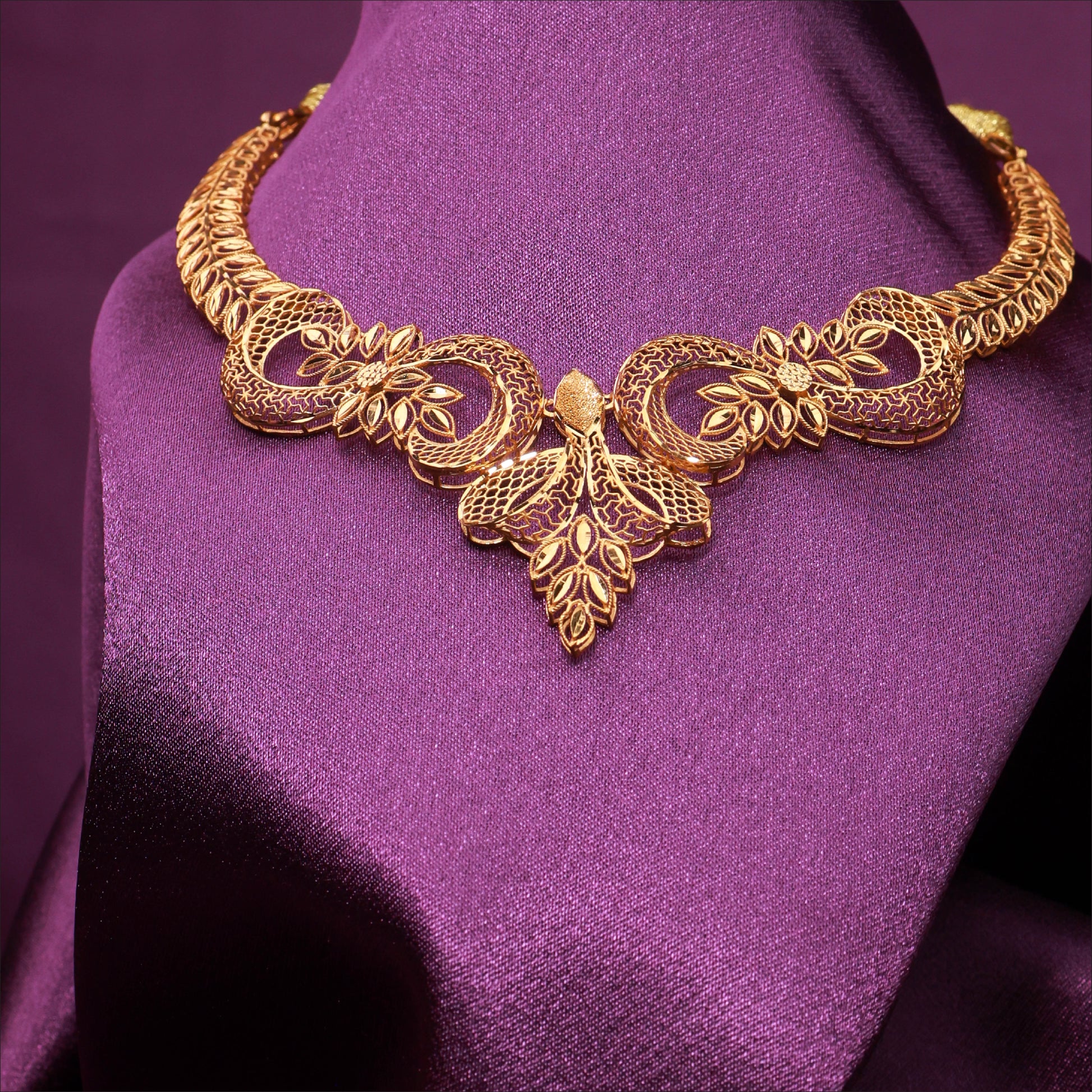 Adorn yourself with this intricate Floral Turkey Necklace. Crafted in high-quality 22KT Gold, this piece is a highlight of our Turkey collection. Perfect for weddings and festive occasions.