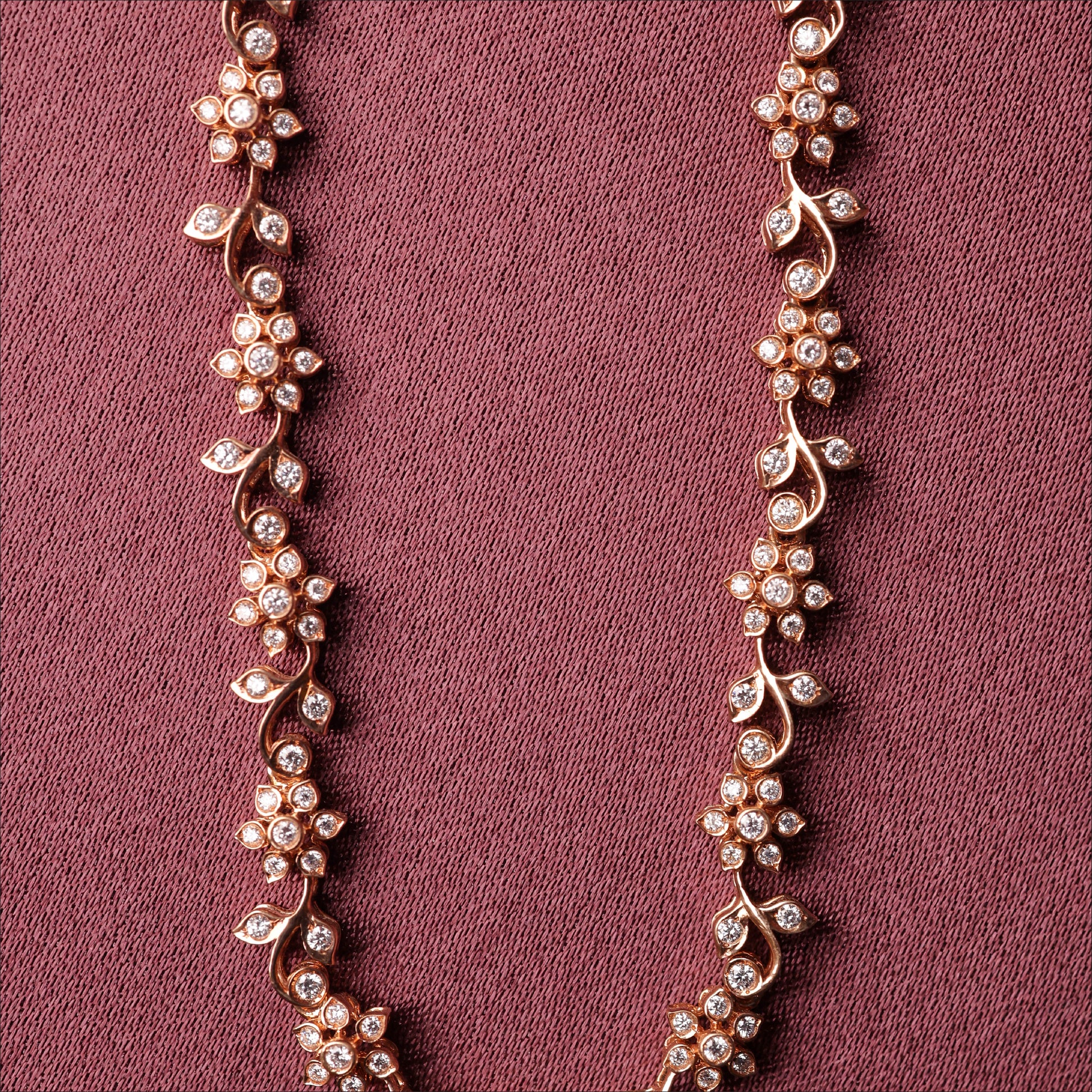 Elevate your style with this stunning Rose Gold Finish Necklece, featuring high-grade luxurious 18KT Gold for a lasting shine. With its Rose gold fancy casting necklece with stone pattern, it serves as a bold statement piece for any outfit. Perfect for women looking to add a bit of sparkle to their day. (Product Code: 6NEC001890)
