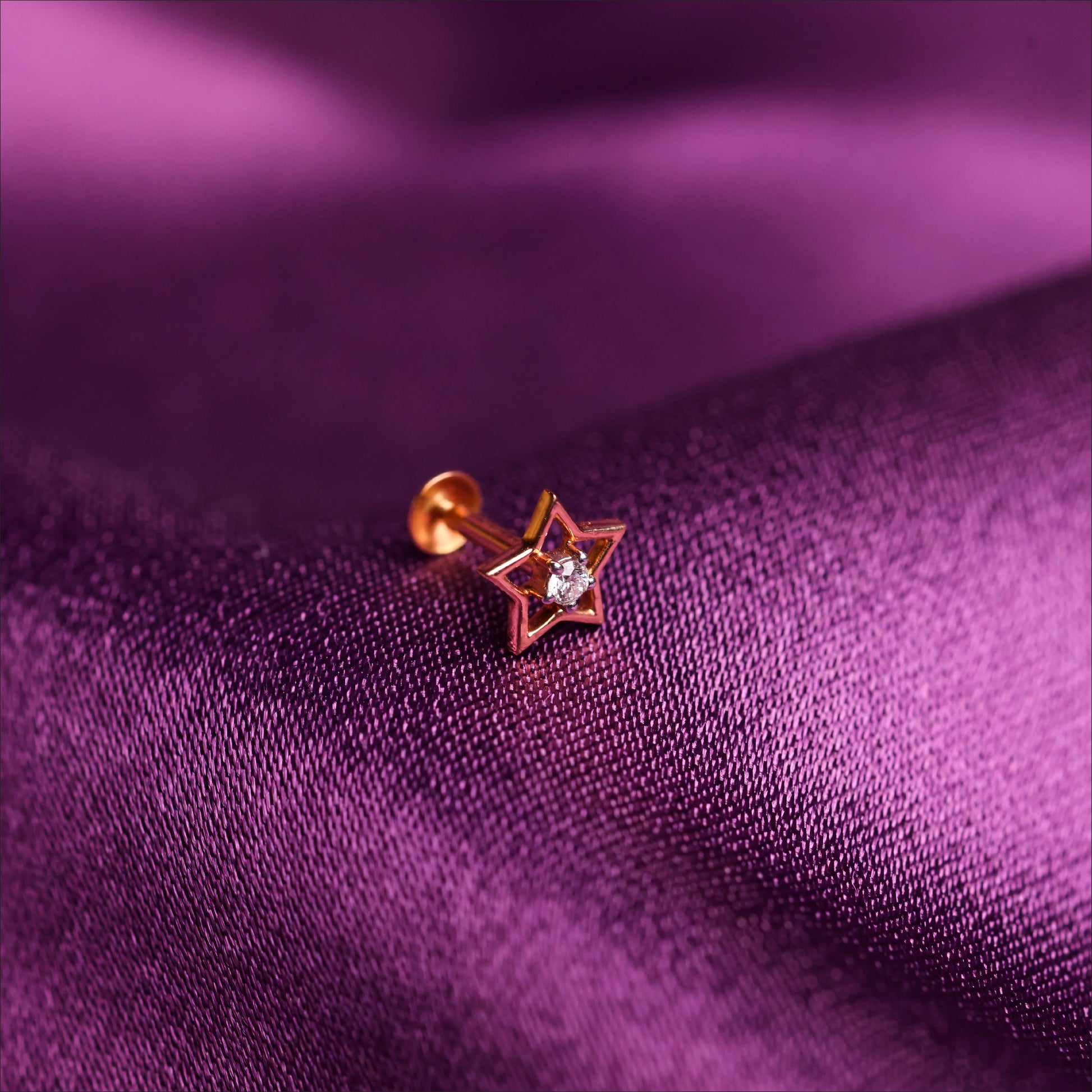 Shine bright with this striking star shape stud for men. Centered with a sparkling single stone, this fancy stud is crafted from premium 22KT gold. This unique men's gold earring is perfect for adding a bold and celestial touch to your style.