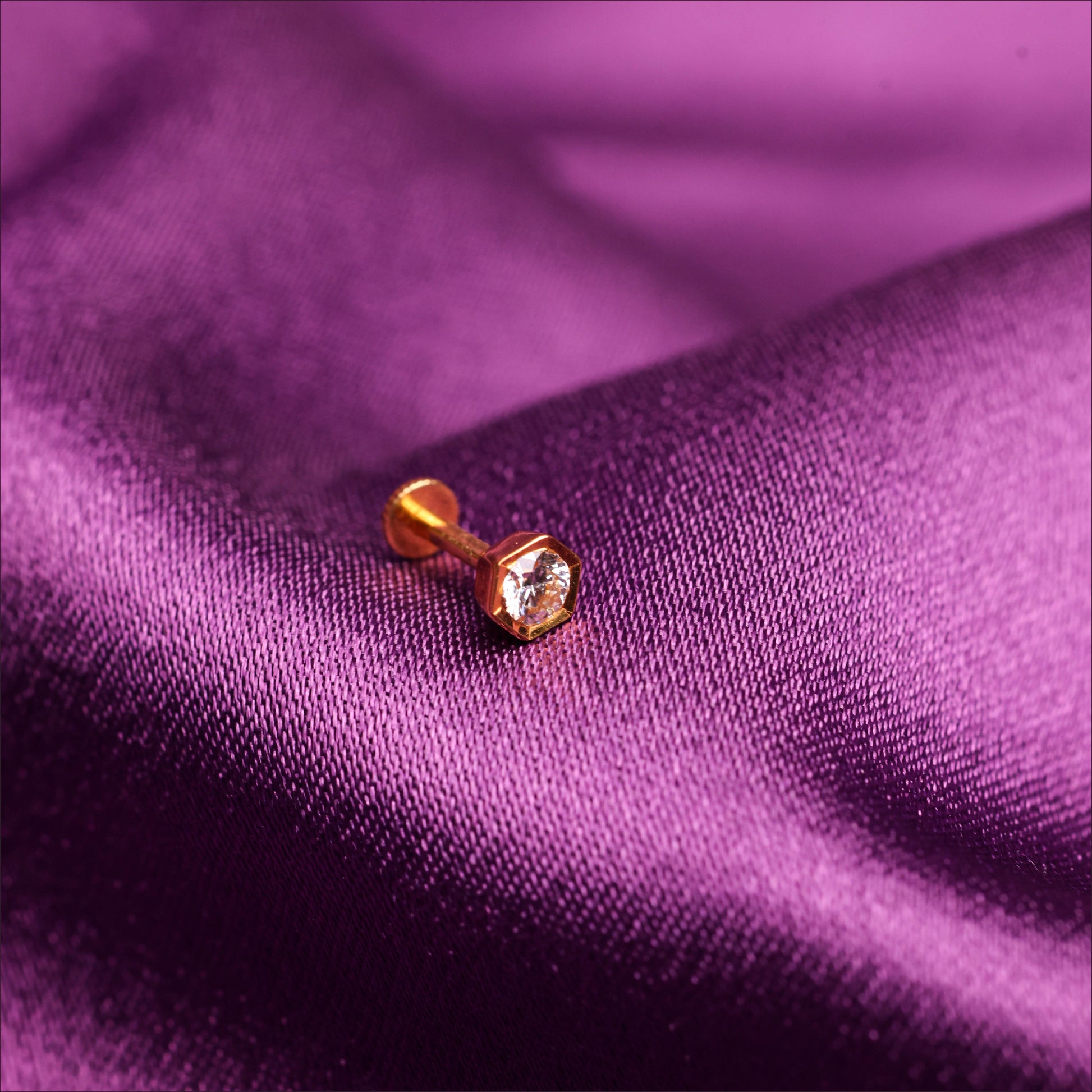 Adorn yourself with this exquisite 22KT Diamond Nose Pin. Tailored for Women, it features a HEXAGON SHAPE NOSEPIN, adding a touch of luxury. Latest Women Diamond Nose Pin Collection.