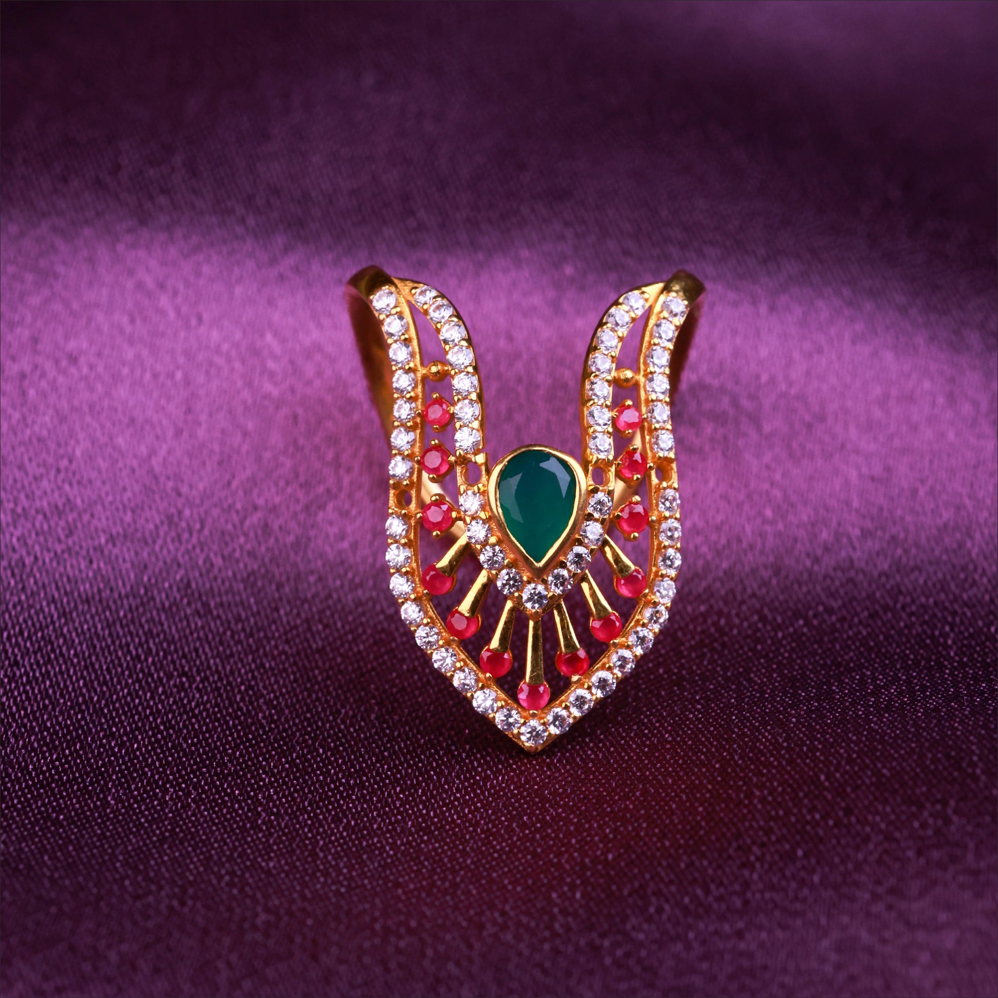 Radiate elegance with this radiant Vangi Stone Ring. Crafted in high-quality 22KT Gold, this piece is a standout in our Stone Ring Collection. Perfect for daily wear or special occasions.