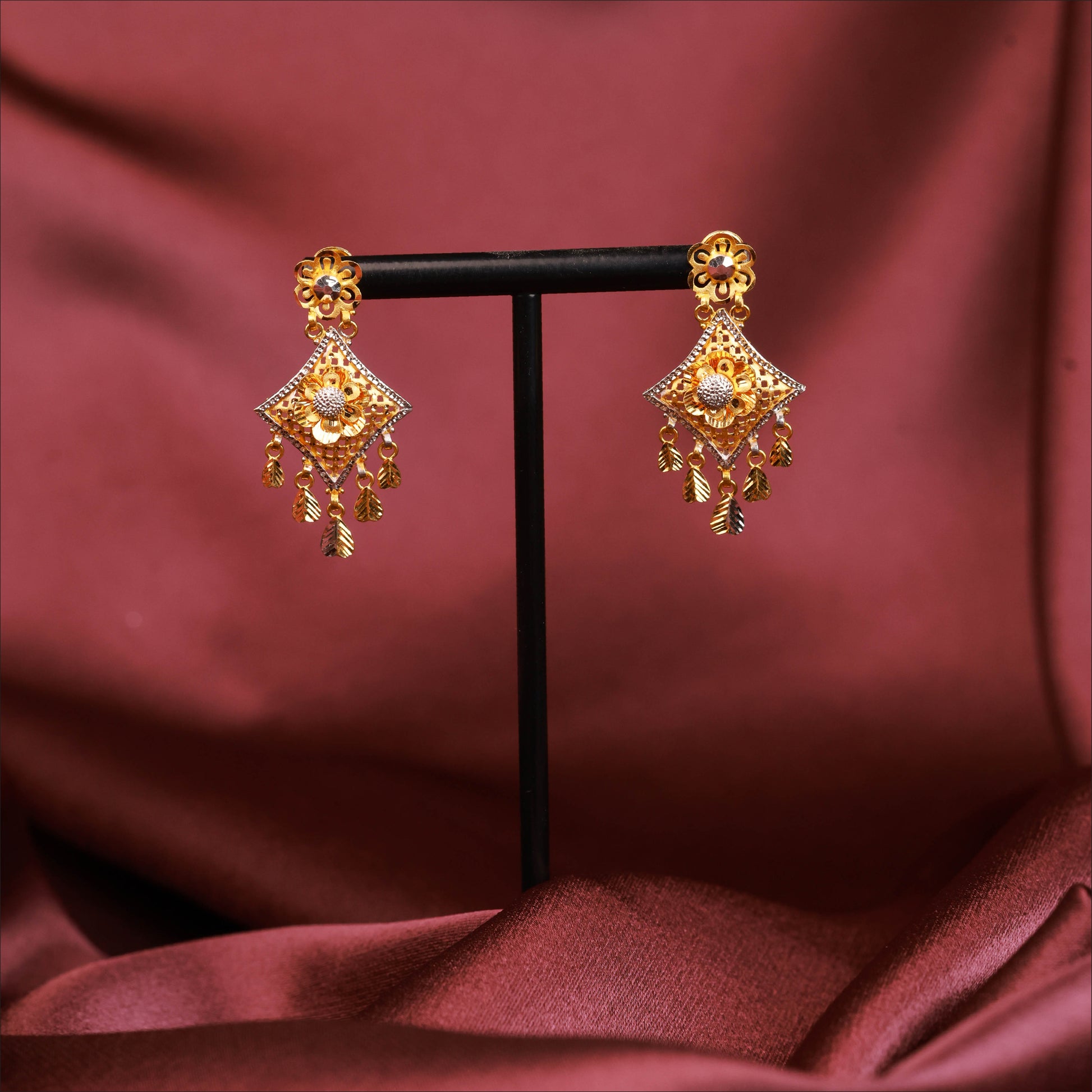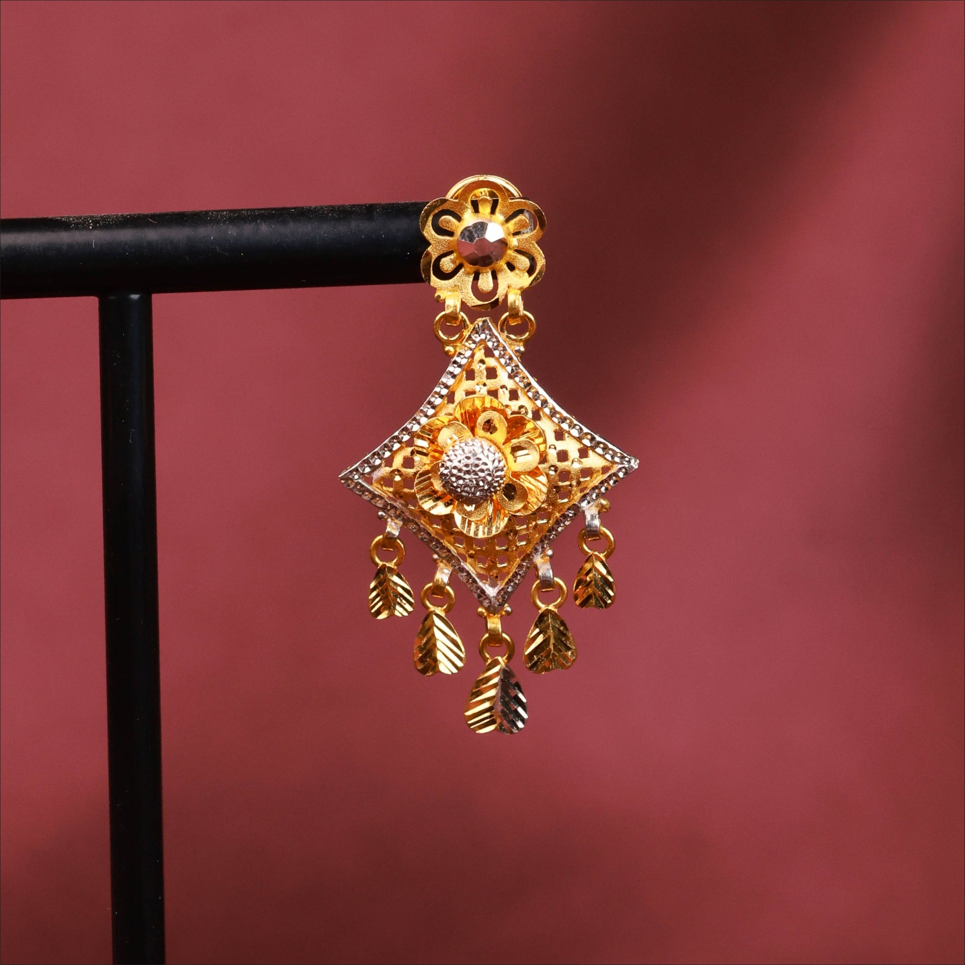 Add a modern touch with these sparkling Fancy Drops. Crafted in high-quality 22KT Gold, this pair is a standout in our Rodium Collection. Perfect for daily wear or special occasions