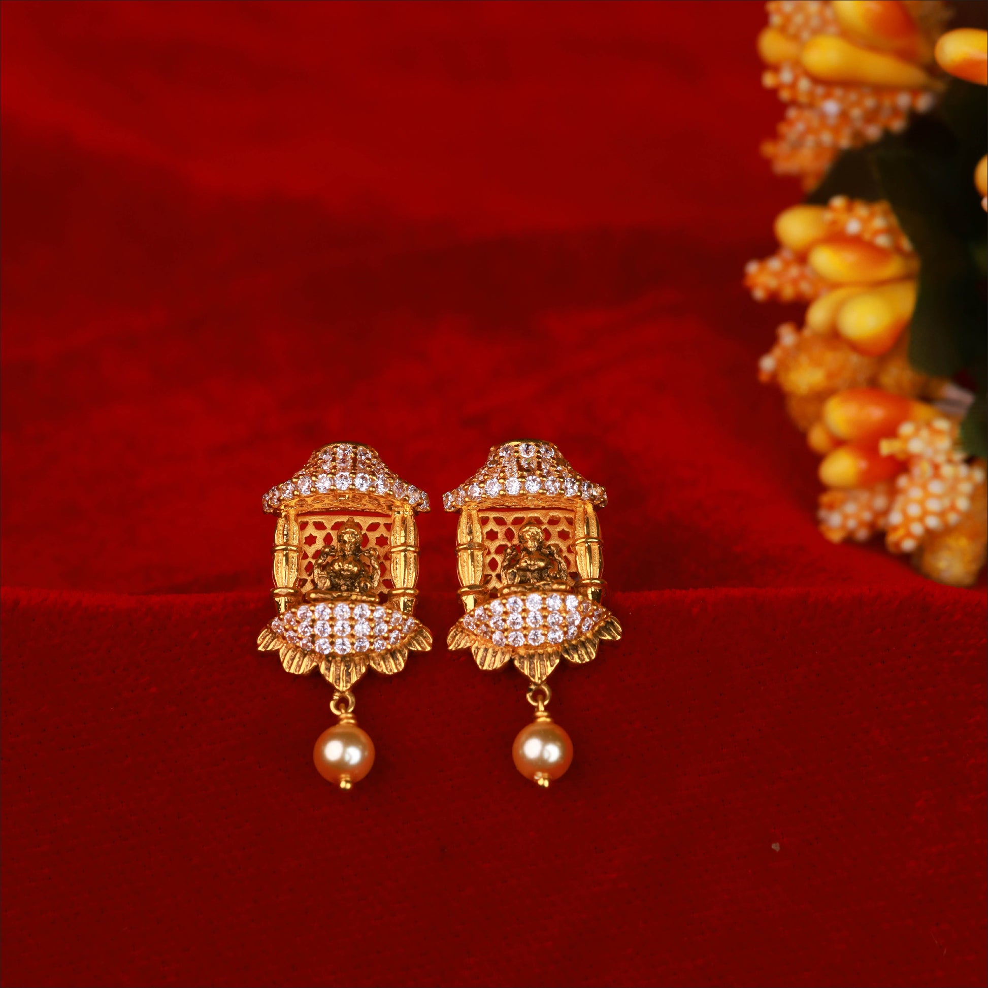 Celebrate heritage with these exquisite Fancy Stone Lakshmi Drops. Crafted in high-quality 22KT Gold, this pair is a standout in our Antique Earring Collection. Perfect for weddings and festive occasions