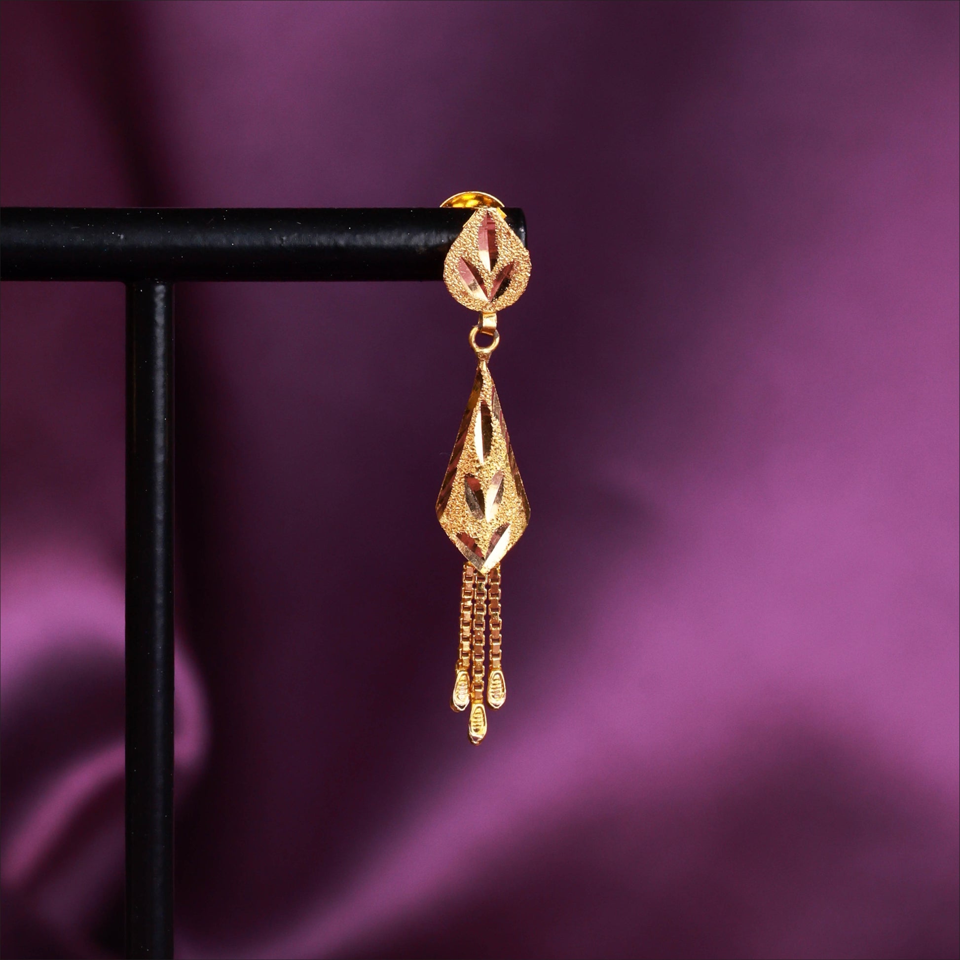 Discover the beauty of these charming Casting Long Drops. Crafted in high-quality 22KT Gold, this pair is a standout in our Earring Collection. Perfect for daily wear or special occasions