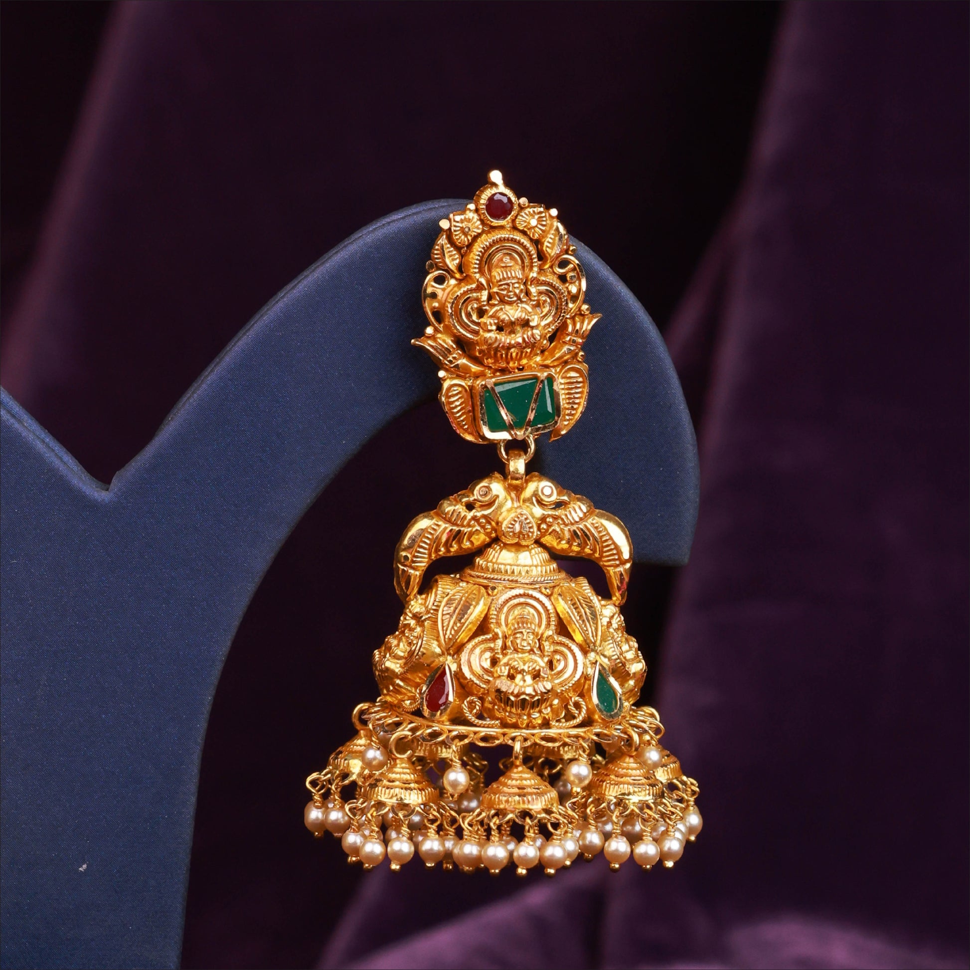Celebrate tradition with these timeless Nagas Lakshmi Jhumka. Crafted in high-quality 22KT Gold, this pair is a standout in our Antique Jhumka Collection. Perfect for weddings and festive occasions